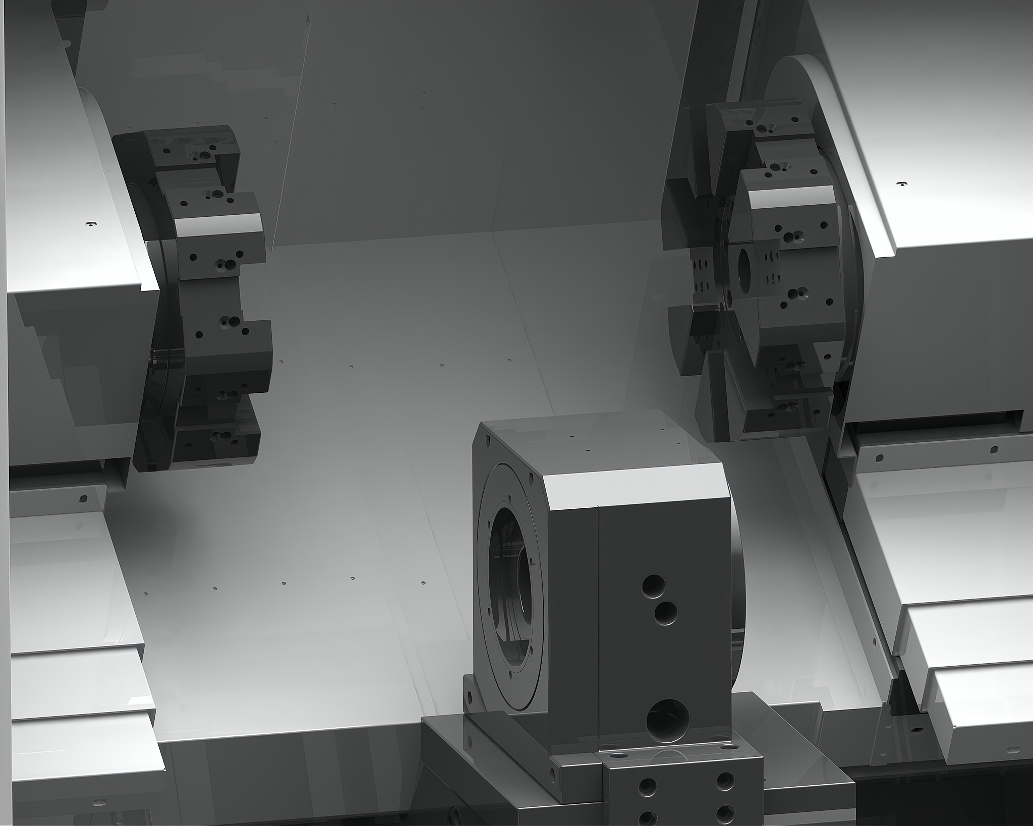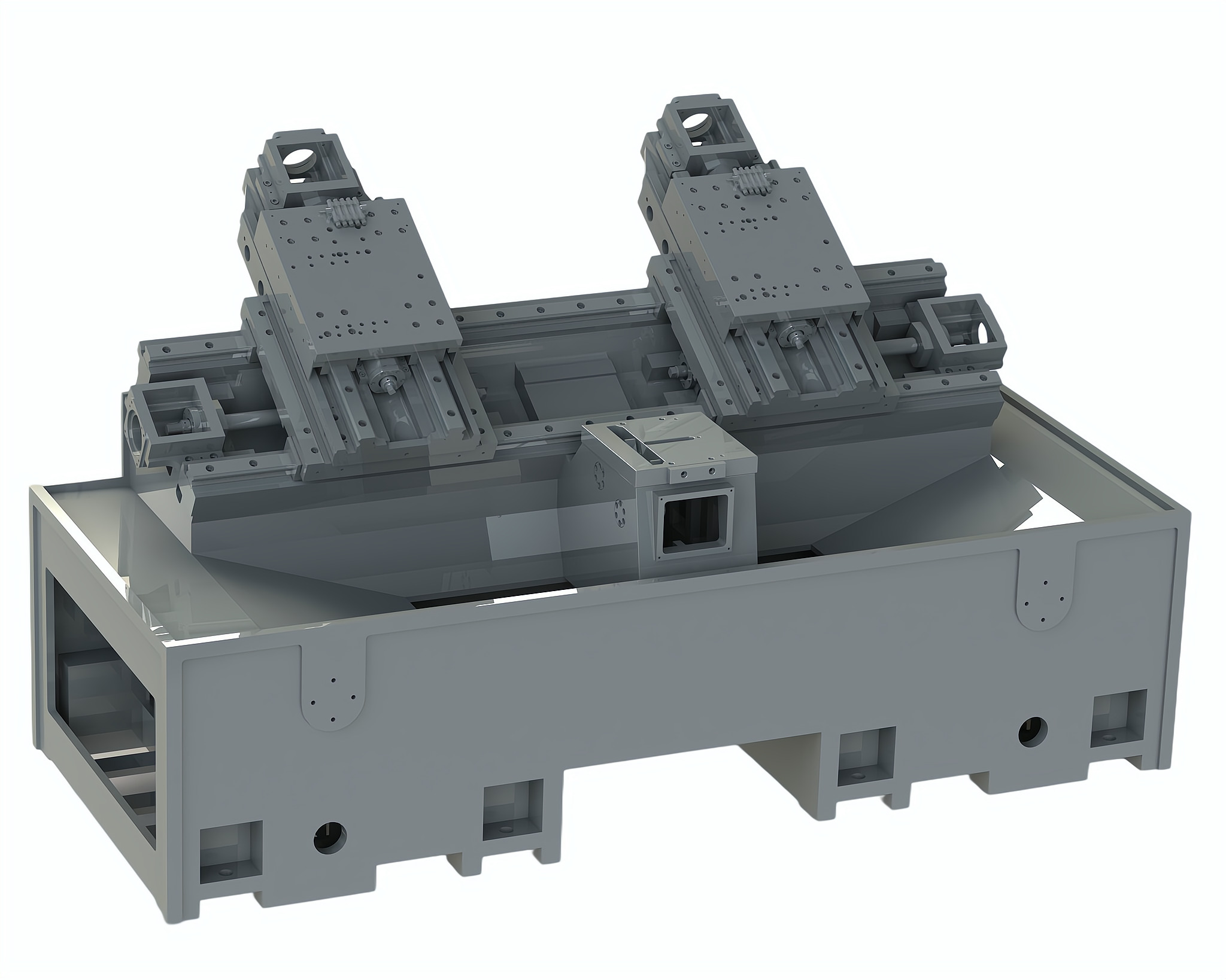 左右刀架為伺服刀塔,分布于主軸箱兩側(cè),為對(duì)稱(chēng)結(jié)構(gòu);